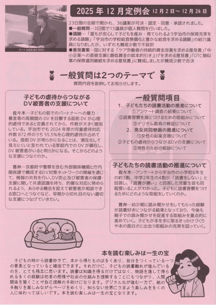 次回は未定、場所は菟道ふれあいセンター図書室の予定です。